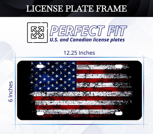 Personalized Vintage American Flag License Plate Frame - Personalise USA Flag Car Front Stainless Steel - Metal Standart Cars USA and Canada Frame for Front - Decorative for Men or Women
