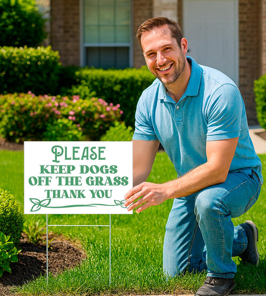 8x12 Inch 3X Please Keep Off Grass Plastic Sign with Grass Stakes - Single Sided No Dog Poop Signs for Yard outdoor - Pick Up After Your Dog Sign - No Pets No Dogs Allowed or Keep Dogs off Lawn Signs