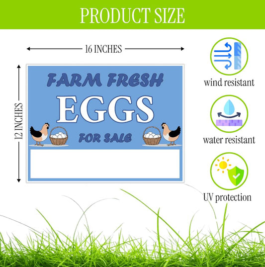 Set of 3 Double Sided 12x16 Inches Farm Fresh Eggs For Sale Sign with Metal H-Stakes - Plastic Farm Fresh Eggs Sold Here Yard Sign - Business Supplies Home Decor or Outdoor and Indoor