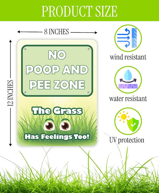 Set of 3 Double Sided 12x8 Inches Plastic Sign "No Poop and Pee Zone The Grass Has Feeling Too" - Pick Up After Your Dogs Signage With H-Stakes - Dont Let Dog On Clean Lawn For Yard and Grass