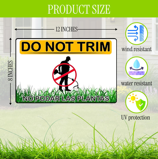 Set of 3 Do Not Trim Yard Sign with Metal Stake 12x8 Inches - Double Sided No Podar Las Plantas sign for Outdoor or Indoor - Bilingual Plant Sign or Plastic Garden Sign for Neighborhood Street