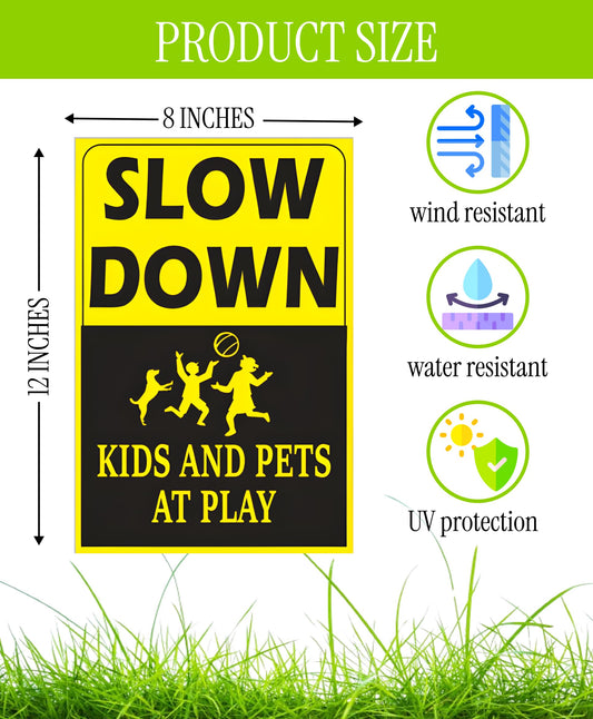 6 Pack 8x12 inch Double Sided Please Slow Down Kids and Pets at Play Yard Plastic Signs with Metal Wire H-Stakes - Drive Like Your Kids Live Here Sign - Children At Play Safety signs for Street Sign