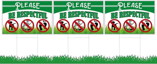 Pack of 3 Be Respectful Dog Plastic Sign 8x12 Inch Double Sided - No Dog Poop Signs for Yard - Pick Up After Your Dog Sign - No Pets No Dogs Allowed or Please Keep Off Grass Lawn Signs with Stakes