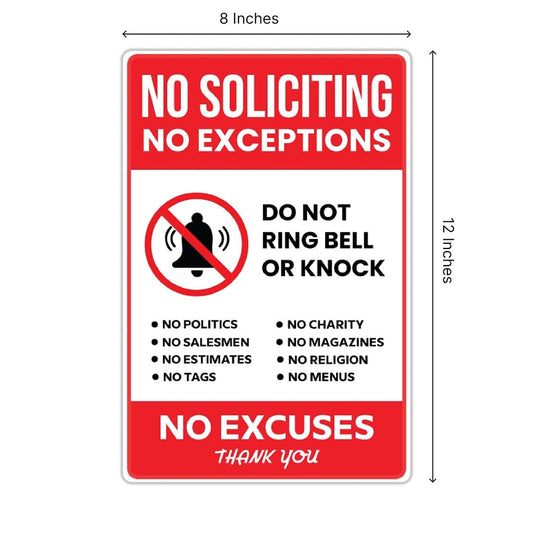 12x8 3X No Solicitation No Exceptions Double Sided Signs with Metal Stakes - Funny Decor for Home House Yard - No Exceptions Do Not Ring Bell No Knock Plastic Sign - No Excuses Lawn Sign for Outdoor