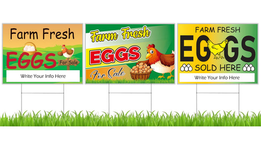3X Double Sided 12x16 Inches Fresh Eggs For Sale Plastic Sign with Metal H-Stakes - Farm Business Supplies Home Decor - Fresh Chicken Eggs For Sale Yard Sign - Fresh Eggs Sign for Outdoor and Indoor