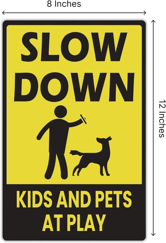 3X Plastic Slow Down Kids and Pets at Play Outdoor Safety Yard Sign With H-Stakes 12x8 Inch - Drive Carefully Like Your Children Live Here - Beware Children in Play with Pet Signs Double Sided