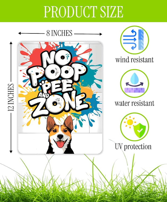 Set of 3 Double Sided 12x8 Inches Plastic Sign "No Poop and Pee Zone" - Signs No Dog Pooping and Peeing For Lawn - Signage With H-Stakes Pick Excrement Dogs Clean Up Behind Yard - Keep Pet Off Grounds