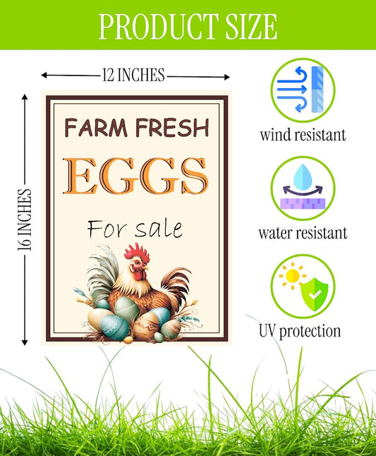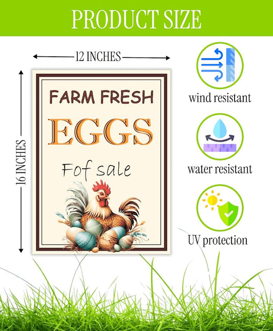 12x16 Inches Set of 3 Farm Fresh Eggs For Sale Plastic Sign with Metal H-Stakes - Double Sided Funny Signs Coop Decor - Farm Sale Eggs Home Decor for Outdoor and Indoor - Sold Here Yard Sign