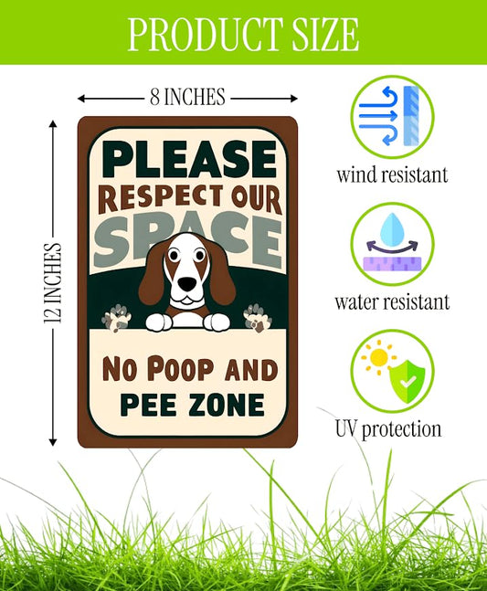 3X Double Sided 12x8 Inches Plastic Sign "Please Respect Our Space and No Poop and Pee Zone" - No Dog Poop Signs With H-Stakes for Yard - Please Clean Up After Your Pet - No Pooping Dog for Garden