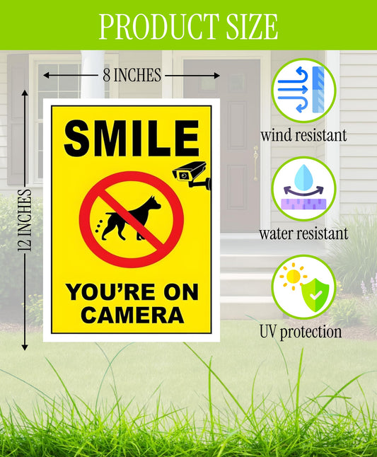 3-Pack 12x8 Inch Smile Your on Camera Signs with Stakes – Outdoor Lawn Protection No Trespassing, Video Surveillance Home Security Yard Plastic Signs – Double-Sided Warning Sign for Private Property