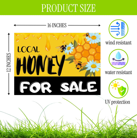 Set of 3 Double Sided 12x16 Inches Local Honey For Sale Yard Sign with Metal H-Stakes - Local Honey Sale Signs for Farm Garden Lawn Outdoor - Funny Plastic Signs For Sale Bee Hive Decoration