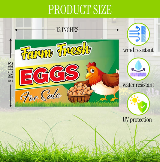 8x12 Inch 3X Double Sided Plastic Sign With H-Stakes Eggs for Sale Yard - Farm Fresh Eggs Signs for Outdoor and Indoor - Funny Signs Chicken Coop Decor - Fresh Chicken Eggs For Sale Sign for Outside