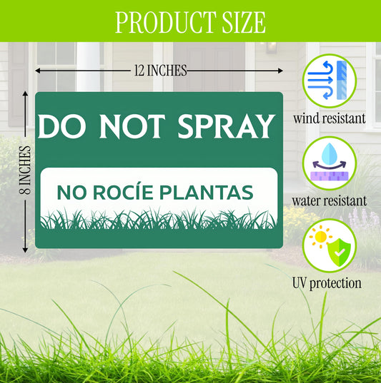3 Pack 12x8 Inches Do Not Spray and Do Not Trim Yard Sign with Metal Stake - Green Bilingual Double Sided Do No Trim Signs for Outdoor - Plastic Neighborhood Street Caution Yard Signs