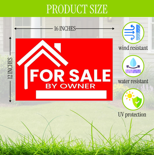 3X For Sale By Owner Yard Sign 12x16 - Single Sided Yard Signs with H Stakes - Home Owners Real Estate Directional Plastic Sale Signs - House For Sale Signs for Real Estate Agent Realtor Supplies