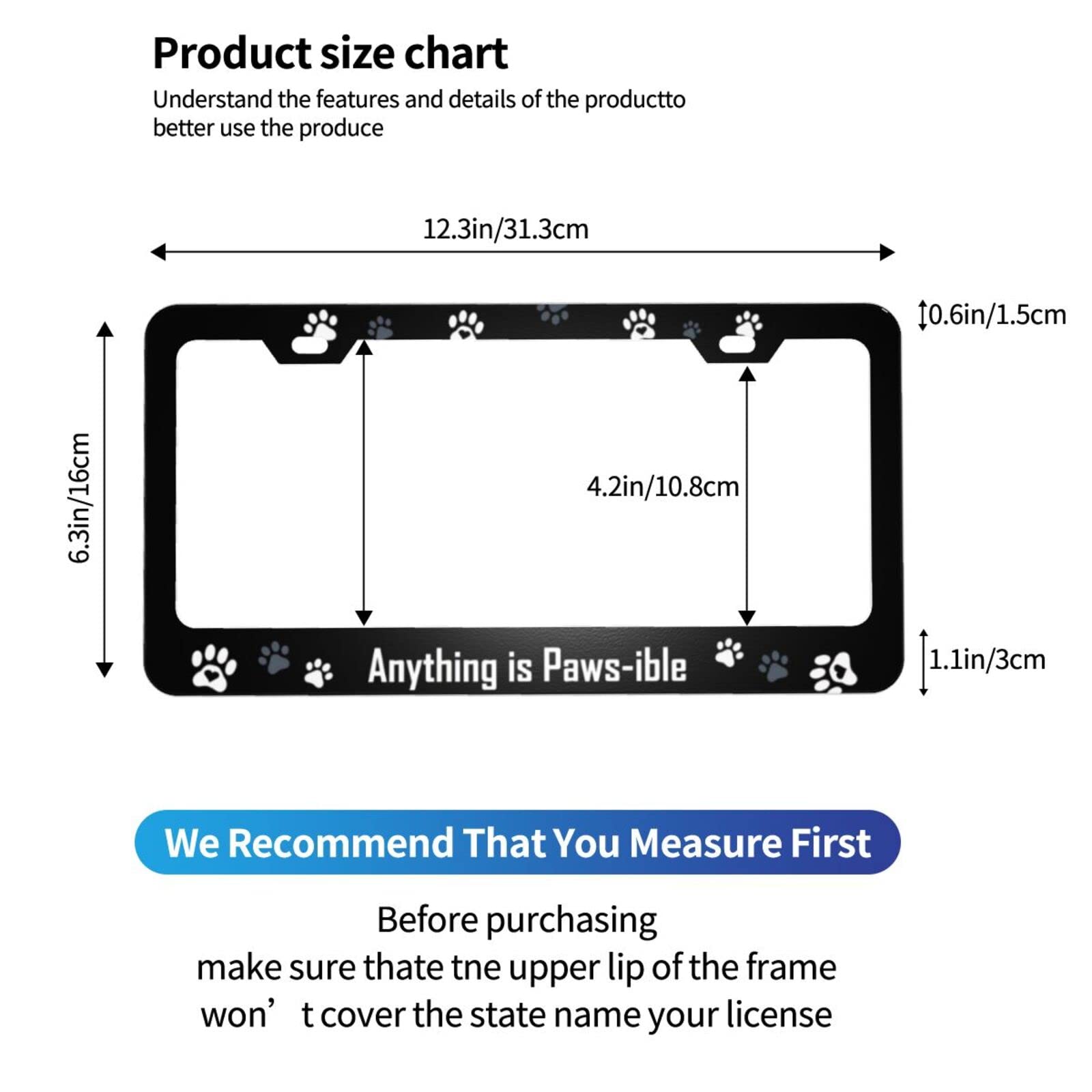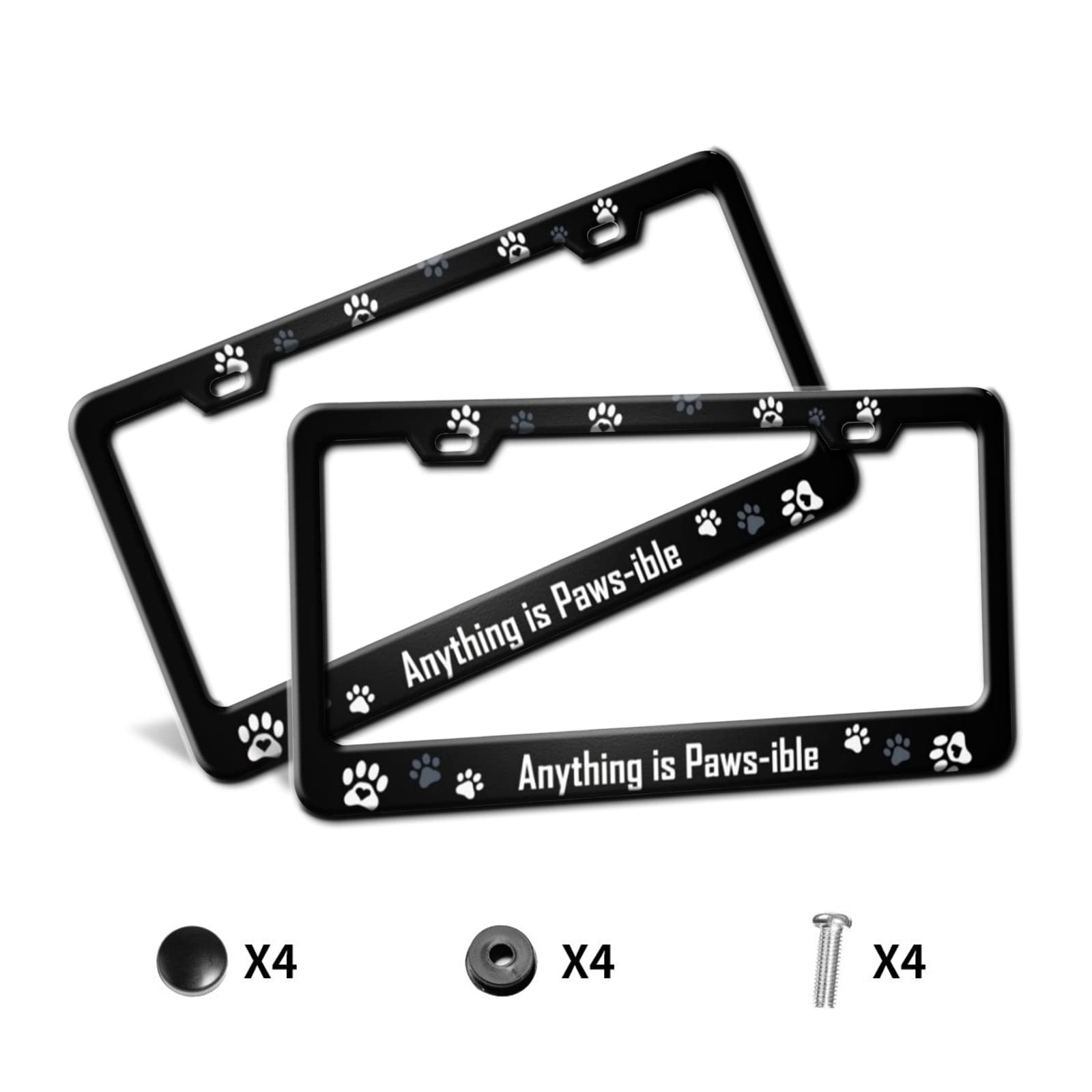 2 Pack Paw Print License Plate Frames Funny Dog Paw Print License Plates Covers Car Tag Frame Cover for License Plate Metal Lighted Aluminum Stainless Car Accessories with 2 Holes