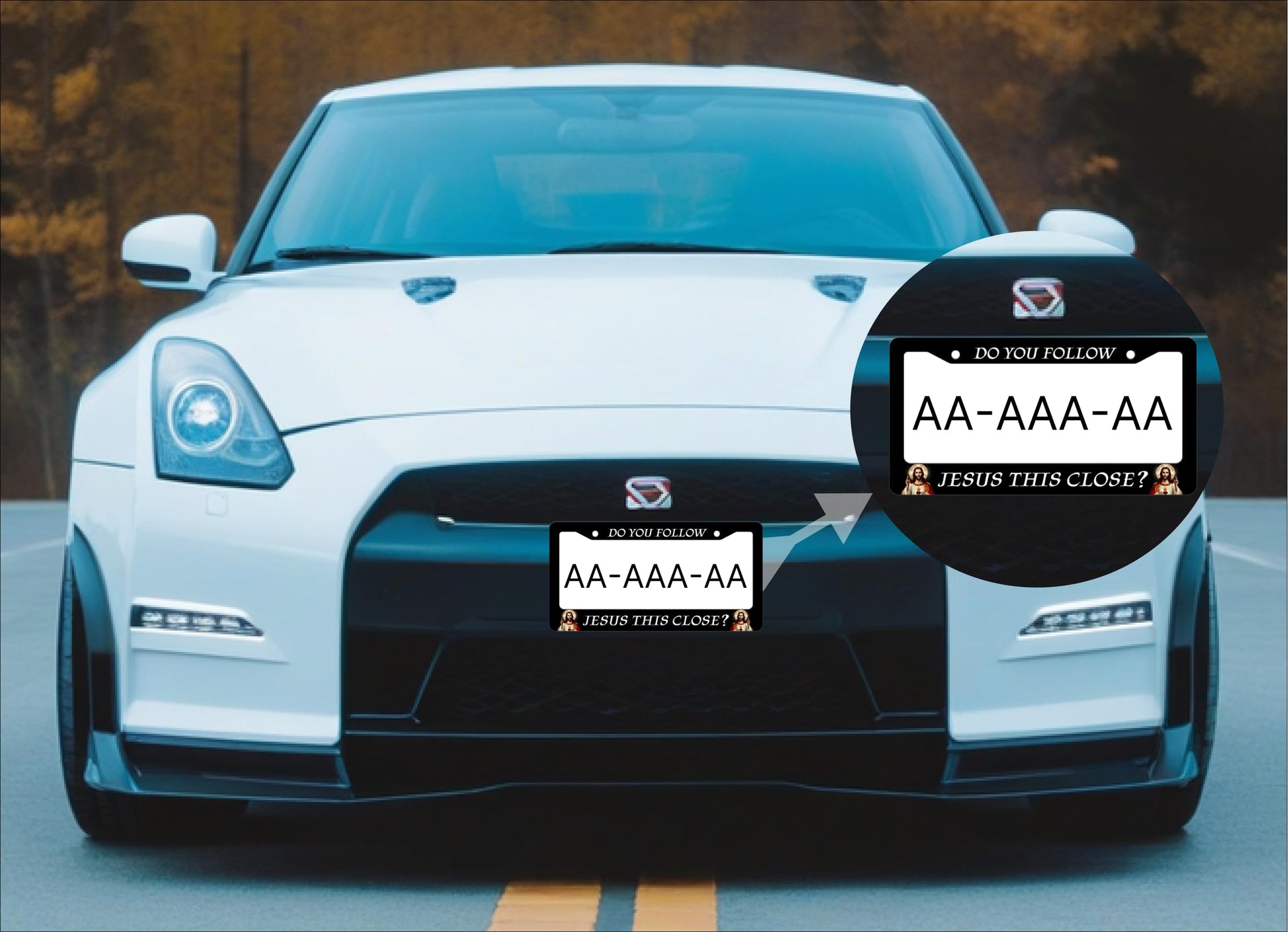 2X Personalized Car License Plate Frame 6x12.25 Inch Do You Follow Jesus This Close? - Metal License Plate Frame with 4 Holes and Screws Universal Accessories - Standart Cars USA Frame for Front
