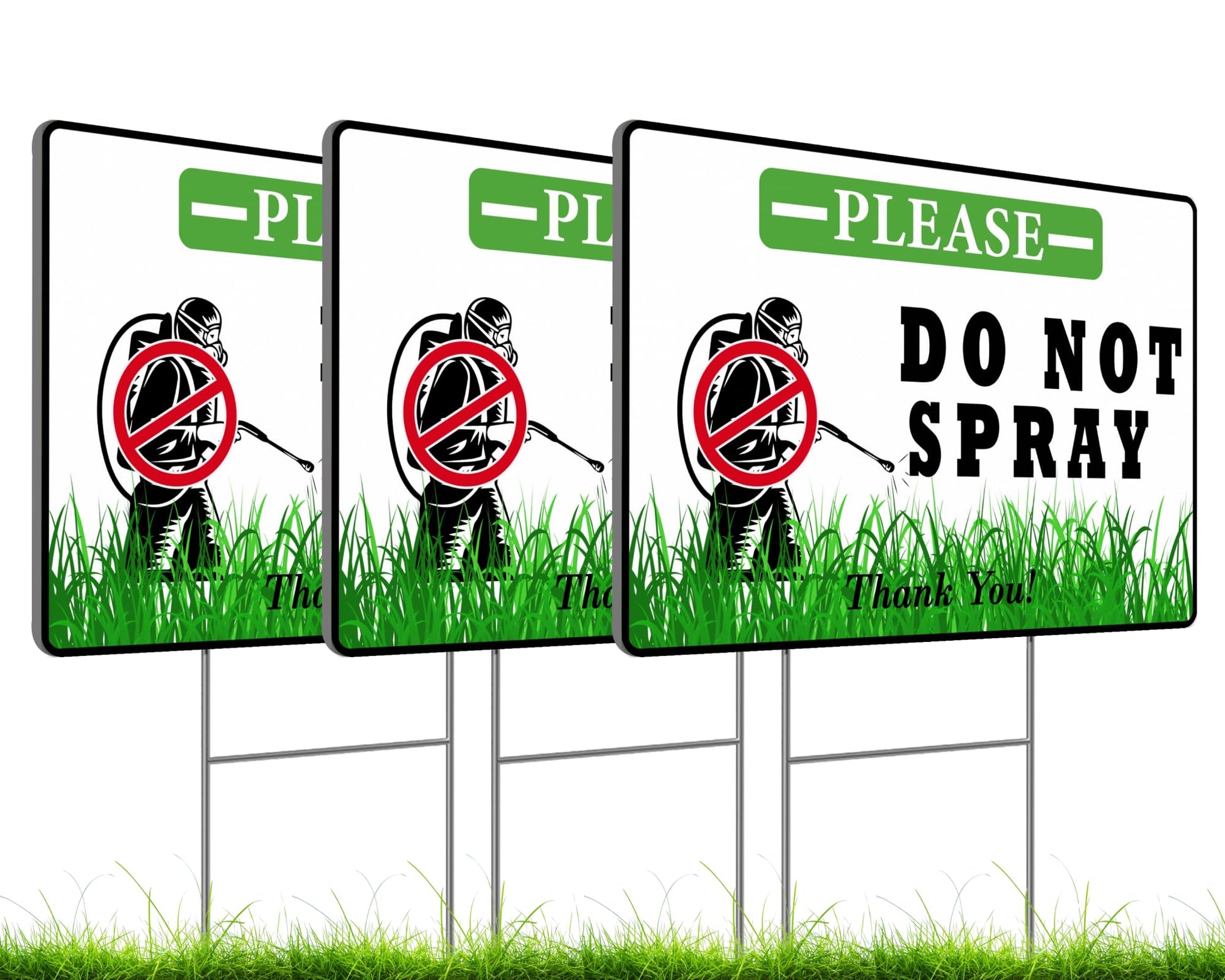 - Do not spray sign, ideal for your lot, front yard, lawn, garden, or any area with grass! Plastic do not spray sign for playgrounds, common areas, yards, businesses, strip malls and etc.