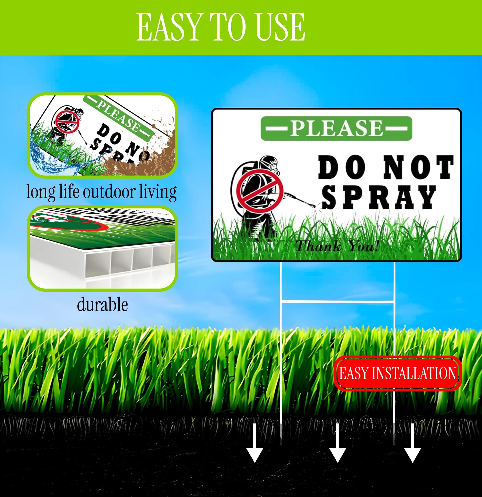 - The do not spray sign with stakes is an elegant and practical decoration, which can be widely applied for yard, lawn, garden, fence, front door and so on, warning people to stay away from your grass.