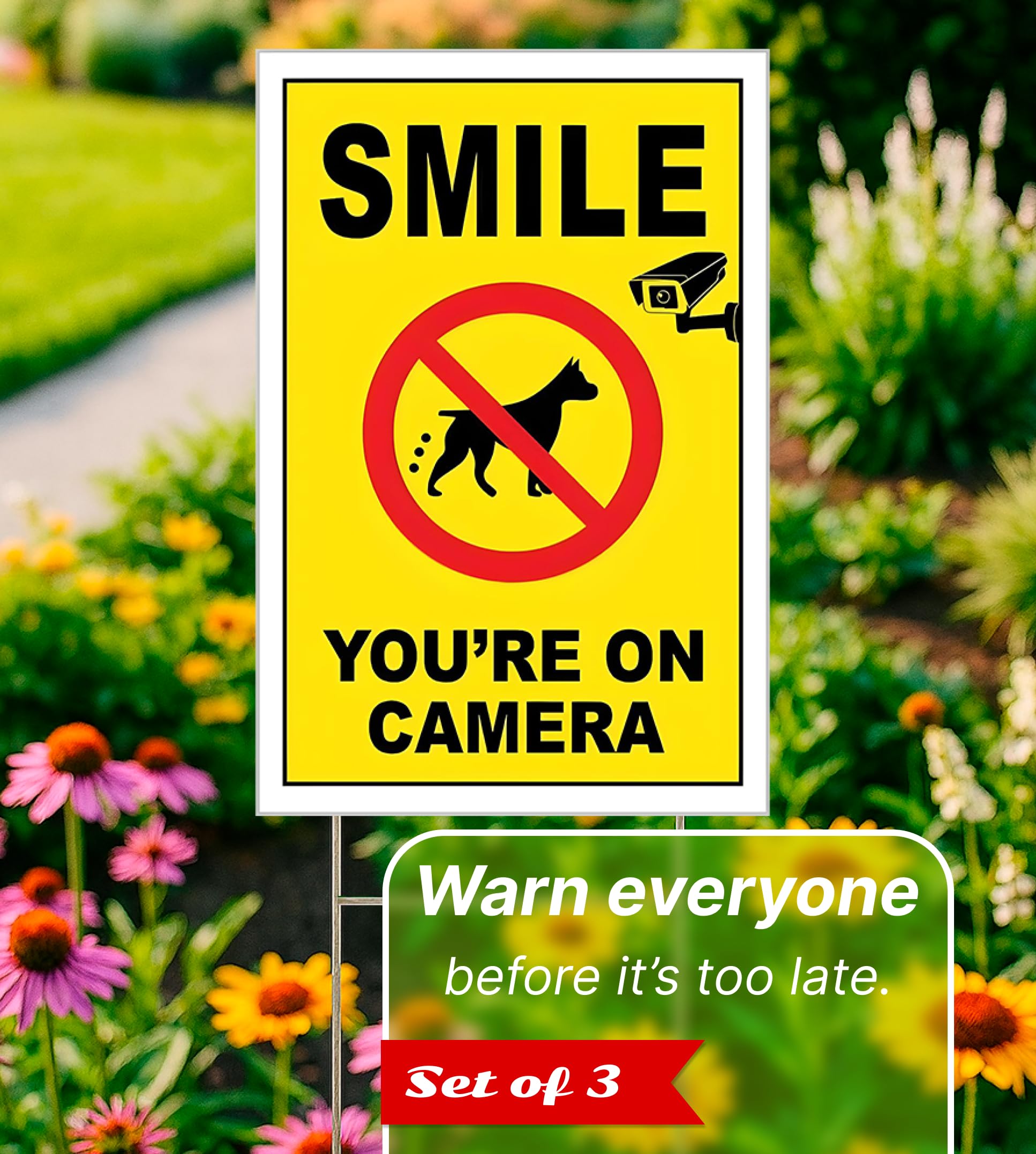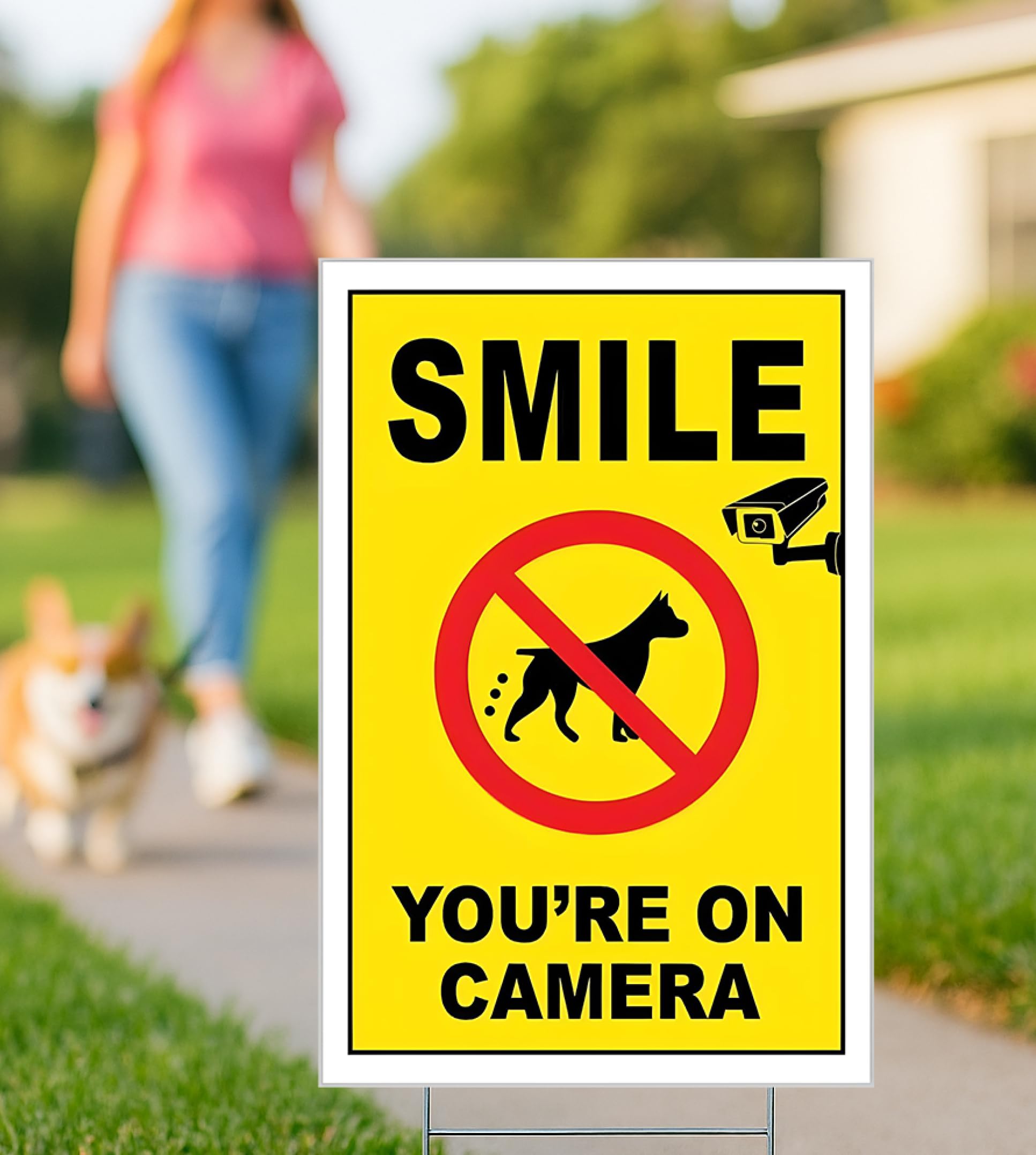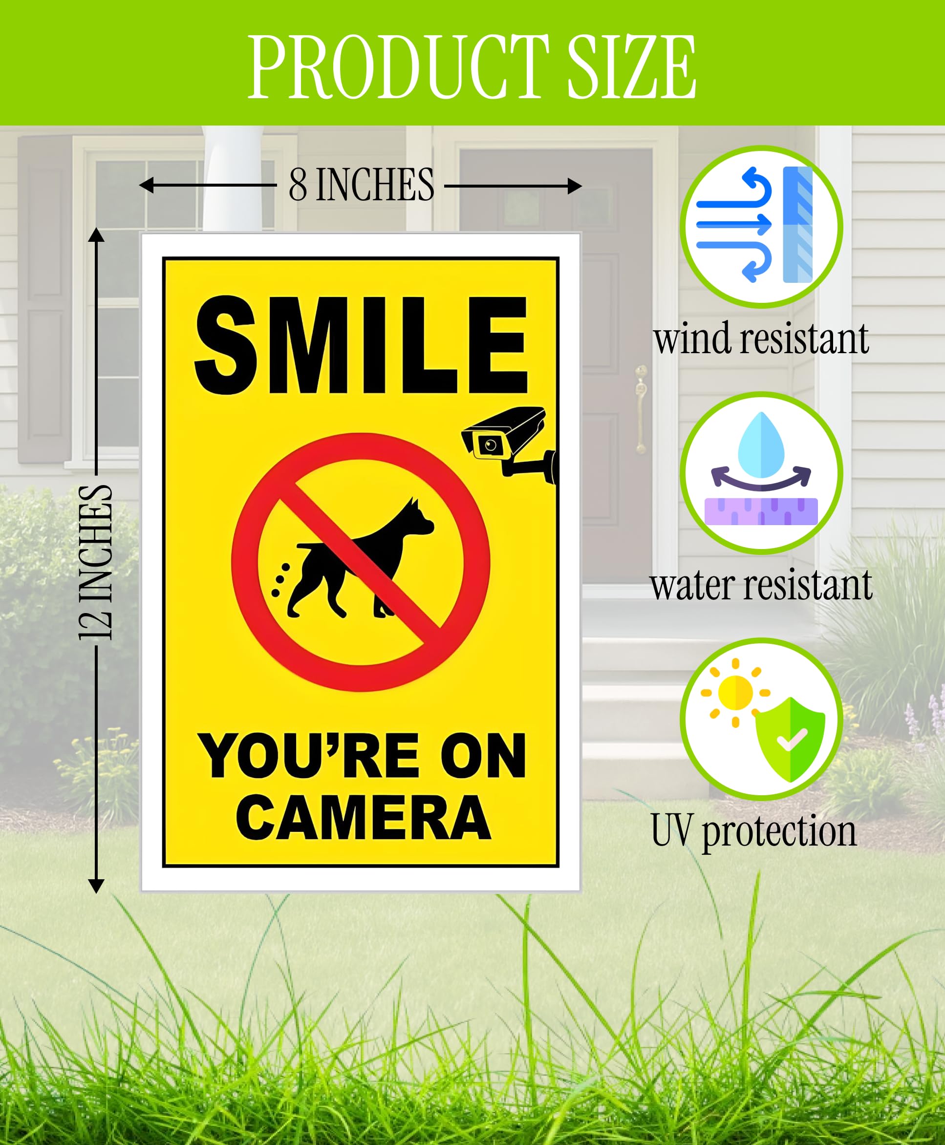 - You are on camera sign outdoor - funny security yard signs no pooping and peeing made in plastic with metal H-Stakes. Waterproof and wind Resistant!