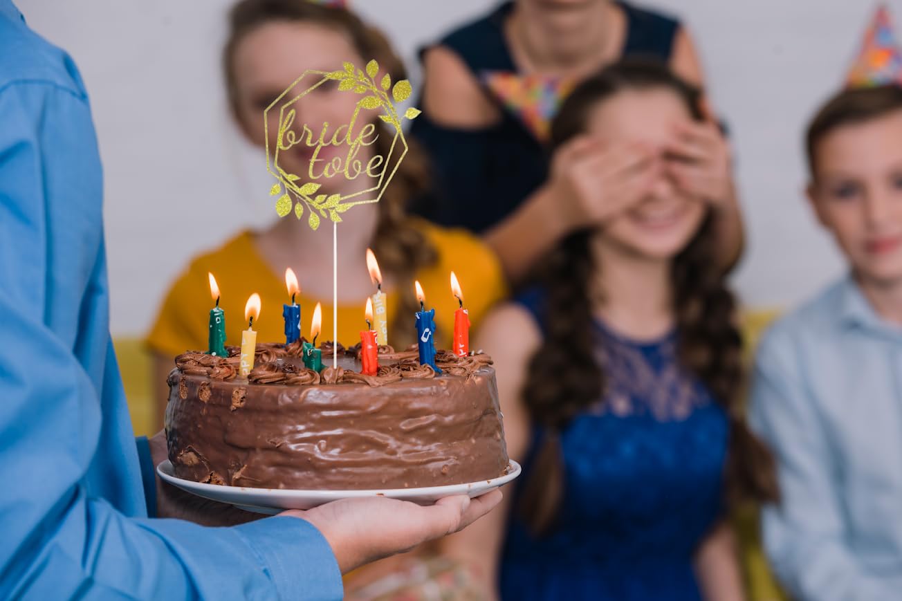 - Bride to be cake topper add some sparkle and elegance to your cake with this beautiful hexagonal gold glitter cake topper that reads "Bride to be"