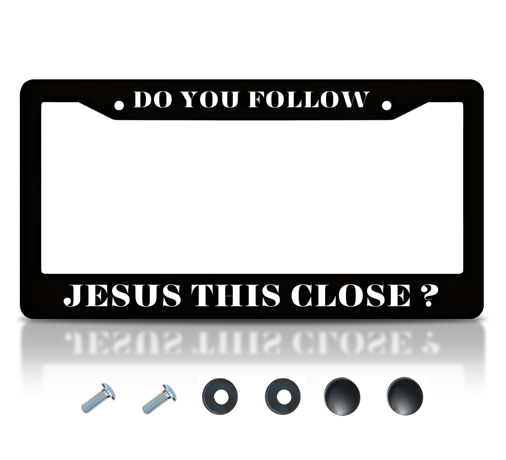 6x12.25 Inch Cool License Plate Frame with 4 Holes and Screws Do You Follow Jesus This Close? - Funny License Plate Frames for US Standard Auto Accessory Bracket Stainless Steel