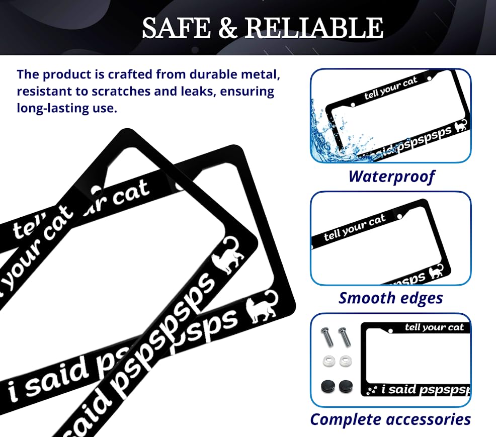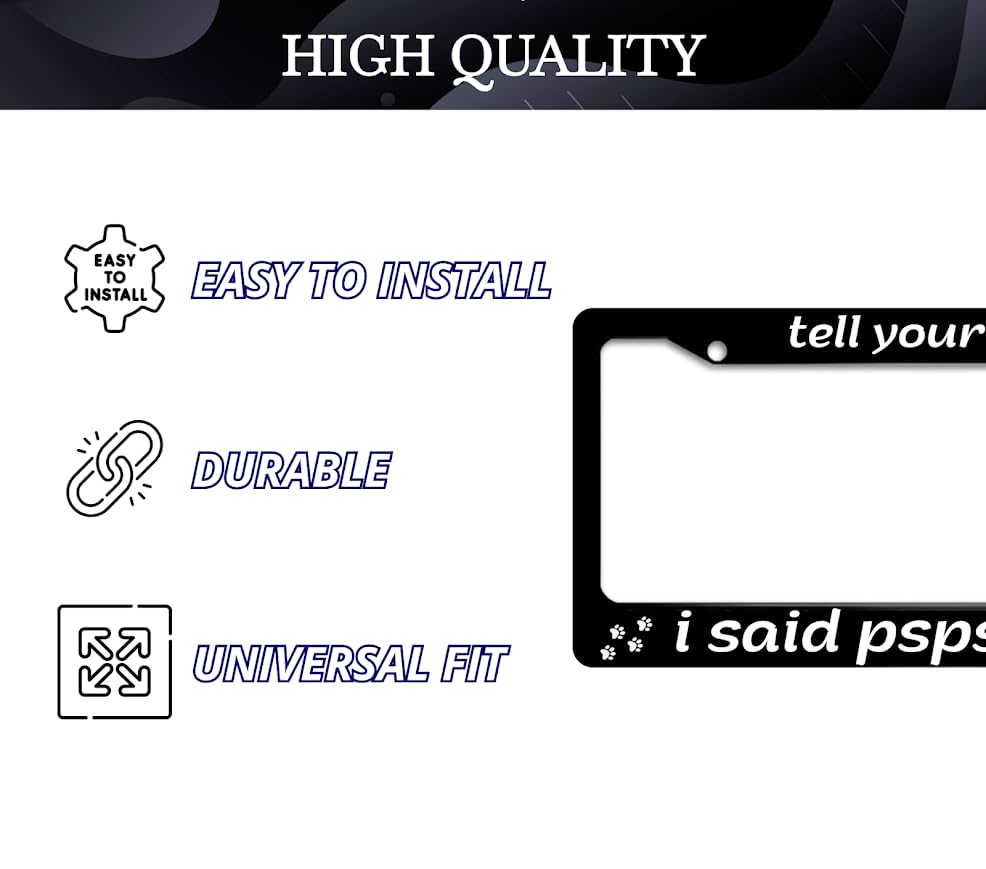 6x12.25 Inch Personalized License Plate Frame for US Standard Tell Your Cat I Said Pspspsps - Matte Black License Plate Frame - Car Accessory Decorative - Metal Plate Frame with 2 Holes and Screws