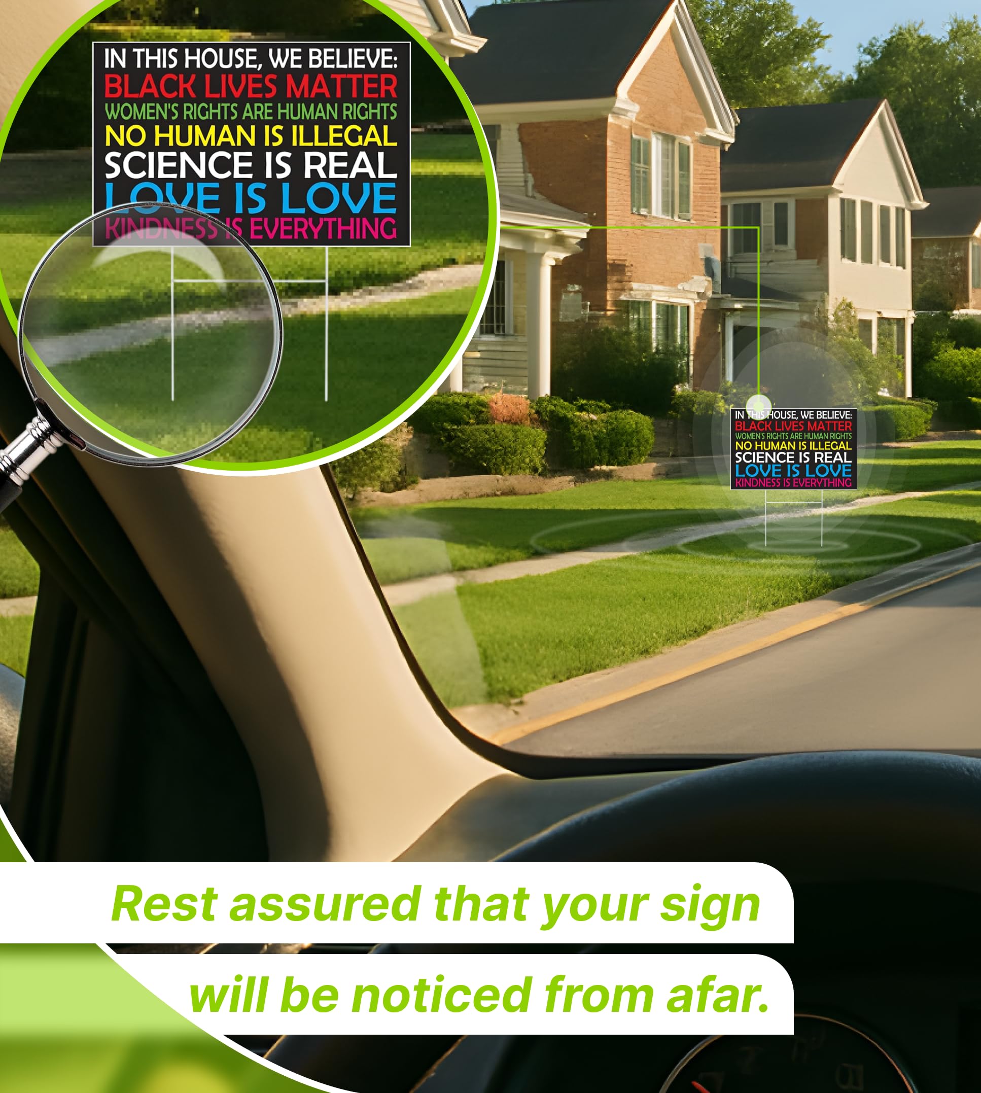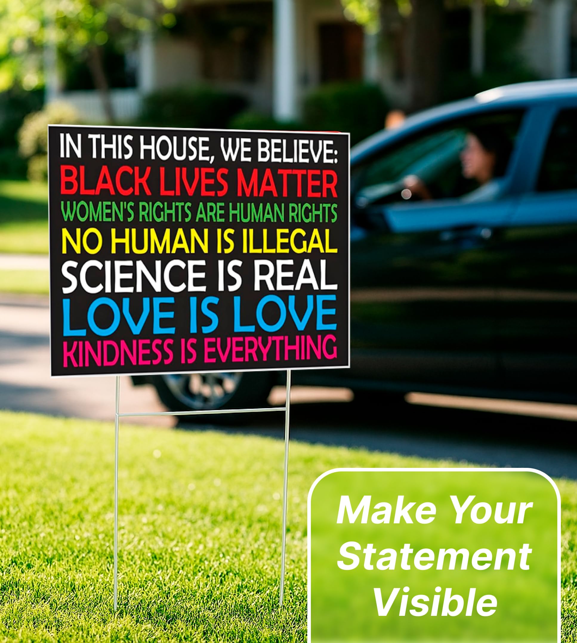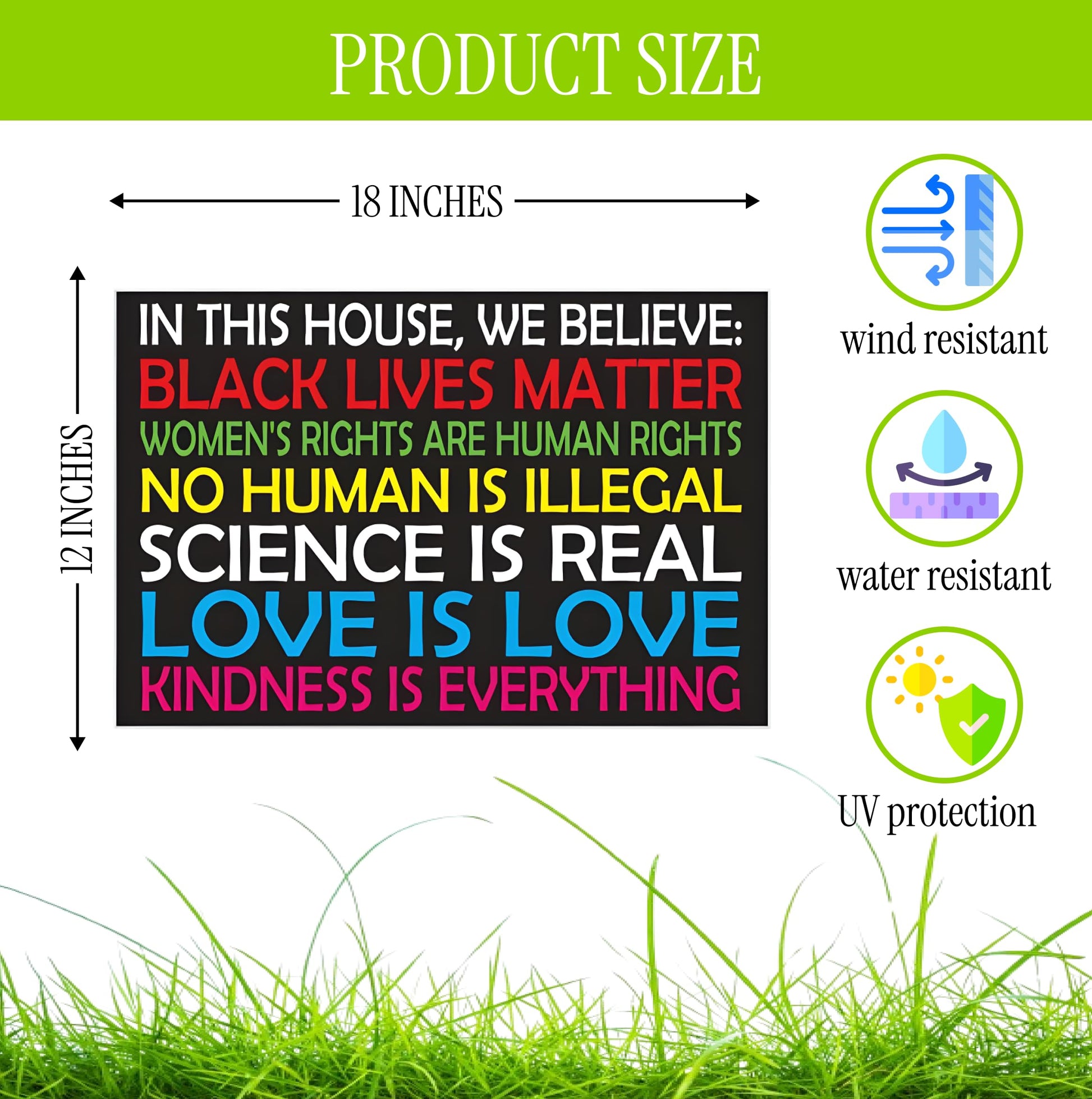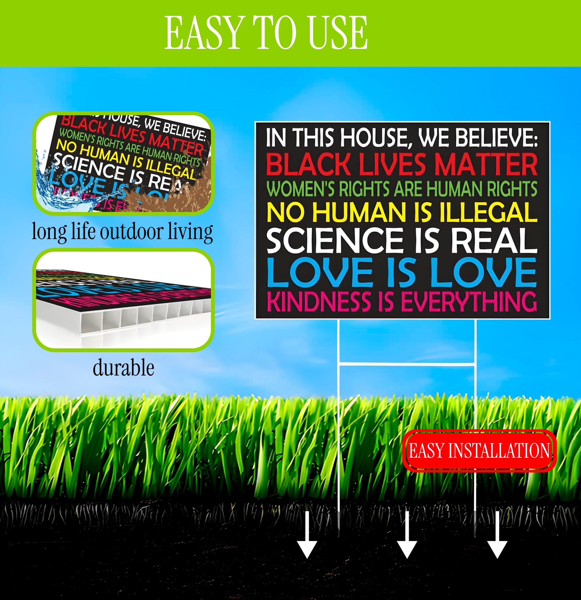Black Lives Matter Yard Sign Double sided 12" x 18" inches with H Metal Stake - In This House We Believe Yard Sign for Home Décor with Big and Bold Letters - Corrugated Plastic - Plastic Protest Signs