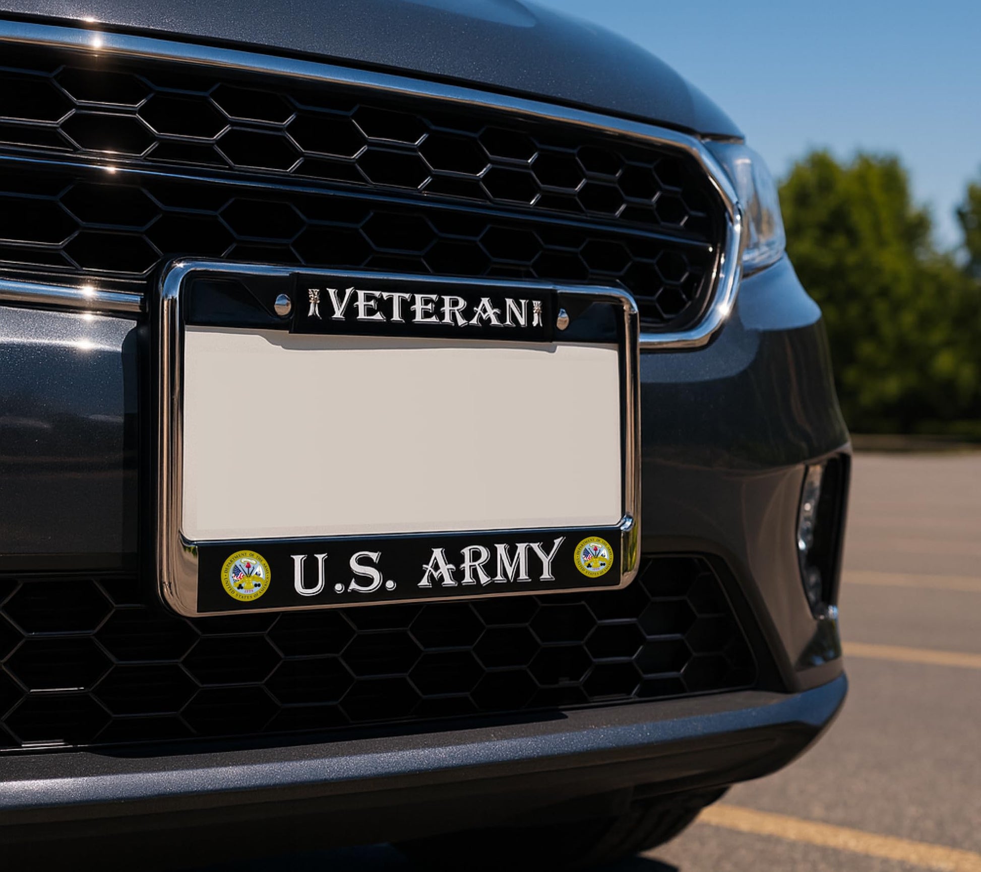 - This license plate frame "US Army Veteran" made of stainless steel, fashionable design style, more beautiful appearance, perfect for decorating the front and back of the car license plate frame.