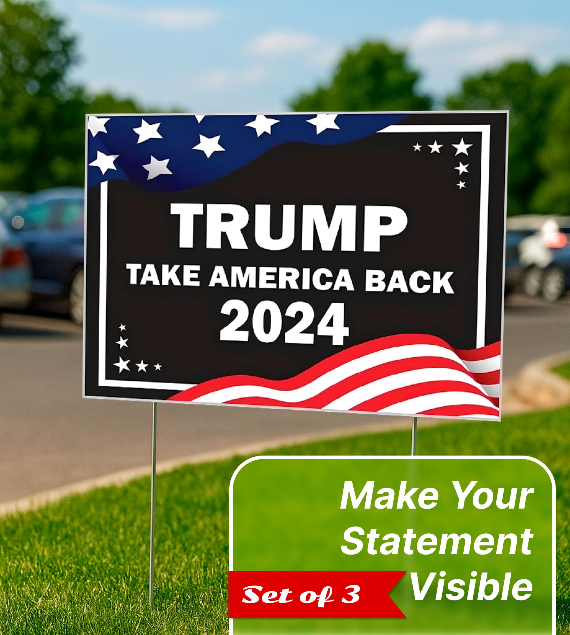 Pack of 3 2024 Yard Plastic Sign - 12x16 Coroplast Donald 2024 Yard Sign With H-Stakes Double Sided - President Take America Back - Biden Yard Sign for Republicans - Political Campaign Yard Sign
