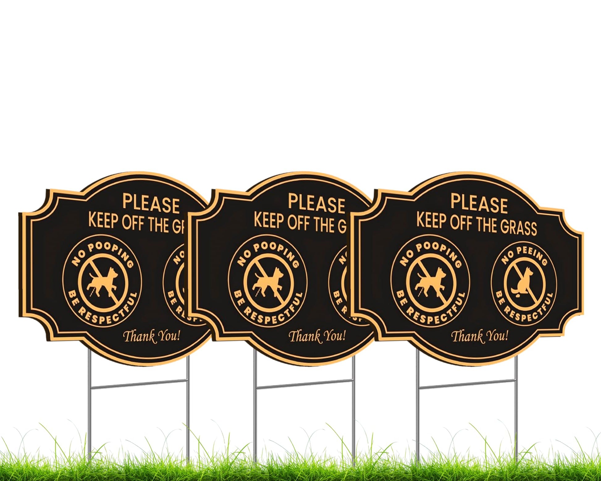 Pack of 3 Please Keep off the Grass Yard Plastic Sign with Metal Stakes - 12x8 Double Sided No Pooping No Peeing Dog Sign - Please Be Respectful Curb Your Dog Sign - Stay off Grass Signs for Yard