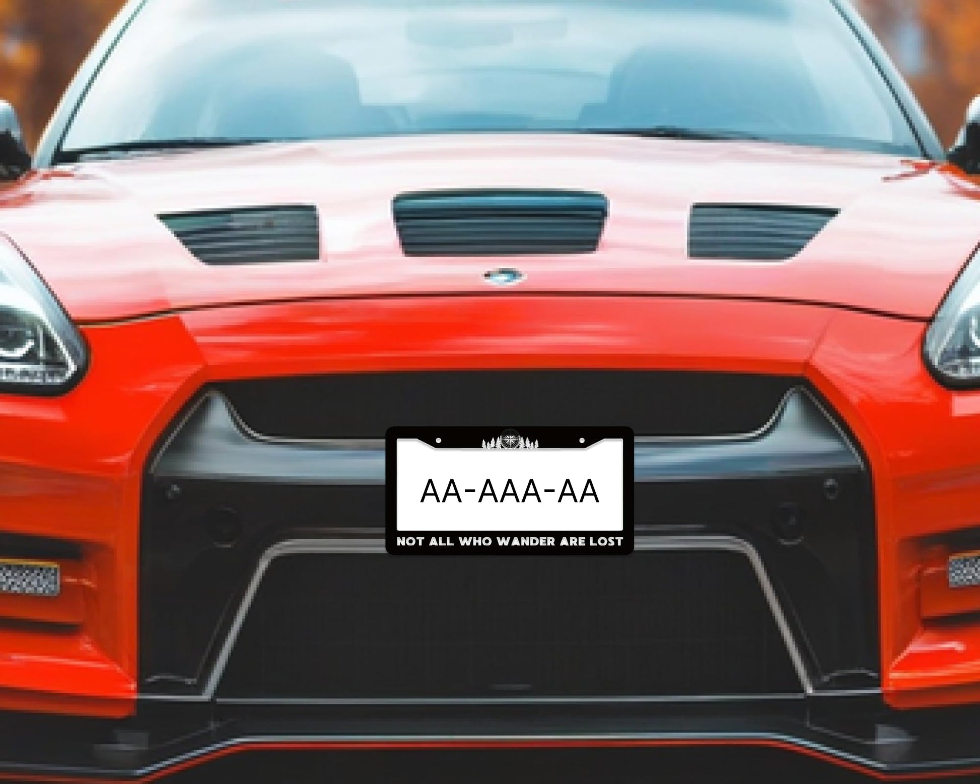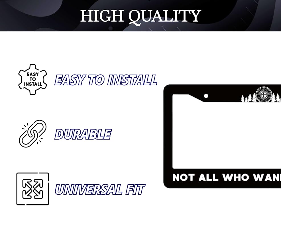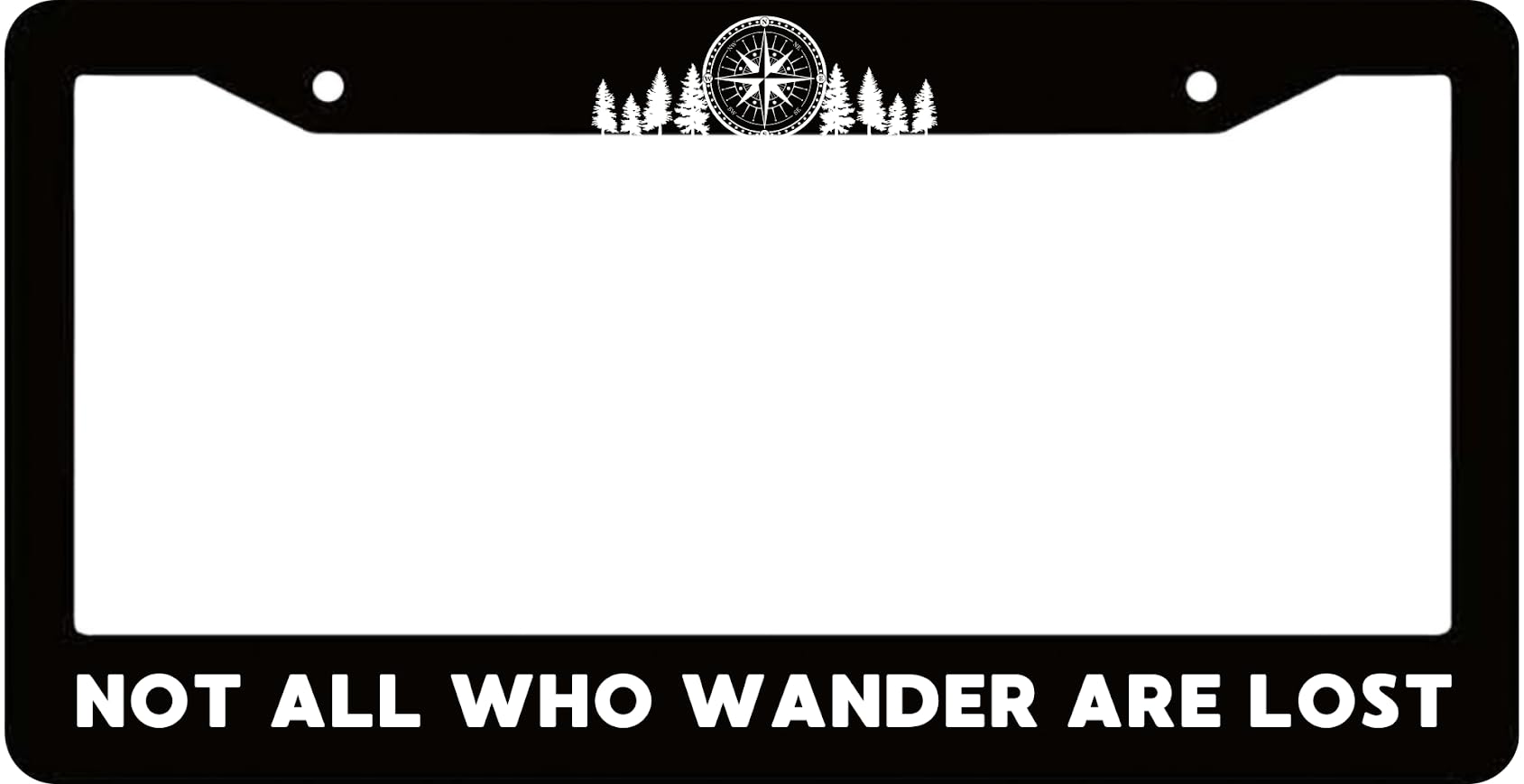 Personalized Car License Plate Frame Not All Who Wander are Lost - Mountains Compass License Plate Frame Stainless Steel - Metal Plate Frame with 2 Holes and Screws 6x12.25 inches for US Standard