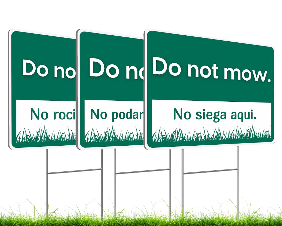 - Plastic do not mow, do not spray and do not trim yard sign for playgrounds, common areas, yards, businesses, strip malls and etc. Please do not mow sign, ideal for your lot, front yard, lawn, garden.