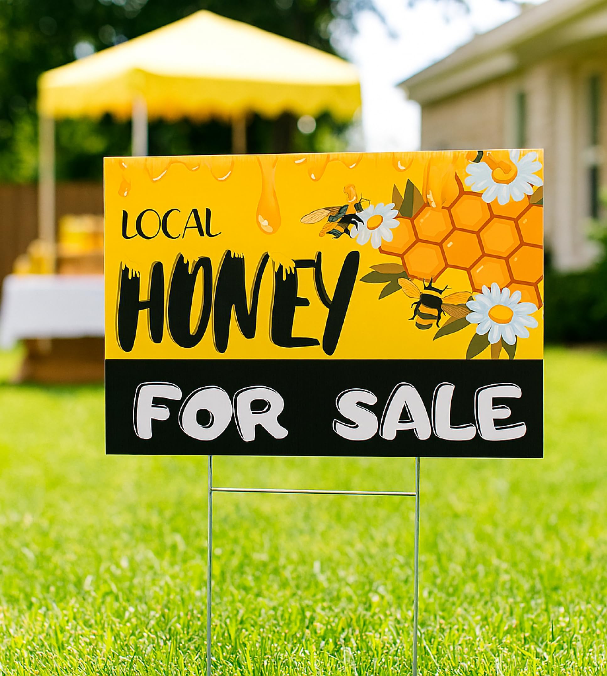 Set of 3 Double Sided 12x16 Inches Local Honey For Sale Yard Sign with Metal H-Stakes - Local Honey Sale Signs for Farm Garden Lawn Outdoor - Funny Plastic Signs For Sale Bee Hive Decoration