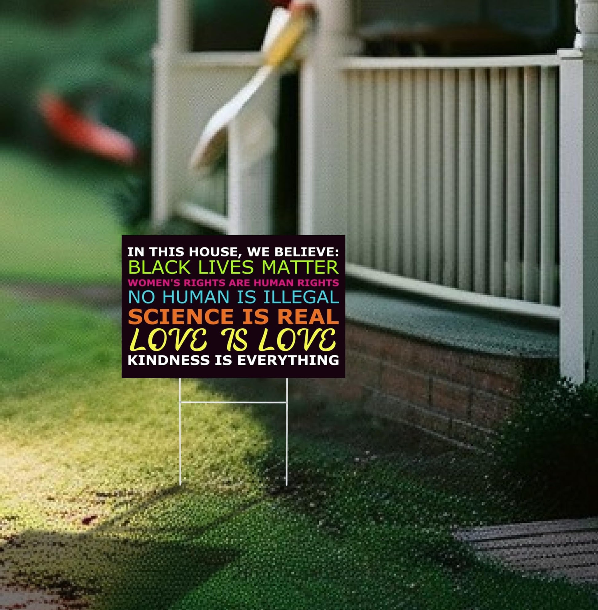 Set of 3 Double Sided 12x18 Inches In This House We Believe Lawn Sign with Metal Wire H-Stakes - Science Love Human Rights Yard Sign - Political Plastic Campaign Yard Signs